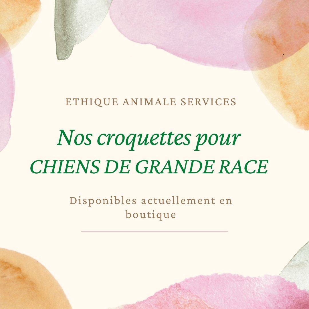 Croquettes pour chien de grandes races: éthique animale service vous propose les croquettes disponibles en boutique pour votre chien adulte de grande taille