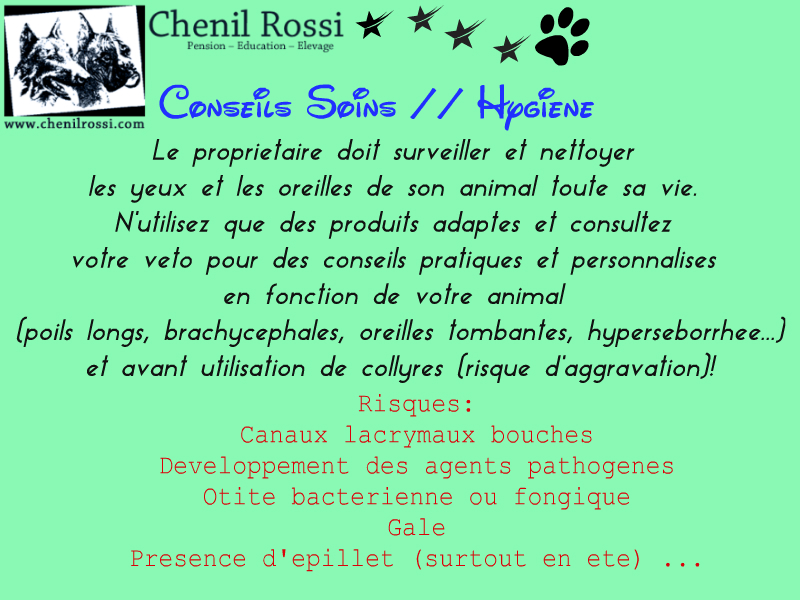 La Pension Rossi vous a préparée la fiche conseil canin pour le soin des oreilles et des yeux de votre chien.